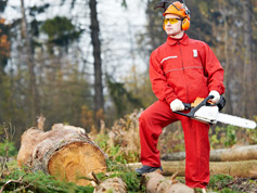- Felling trees with a chainsaw